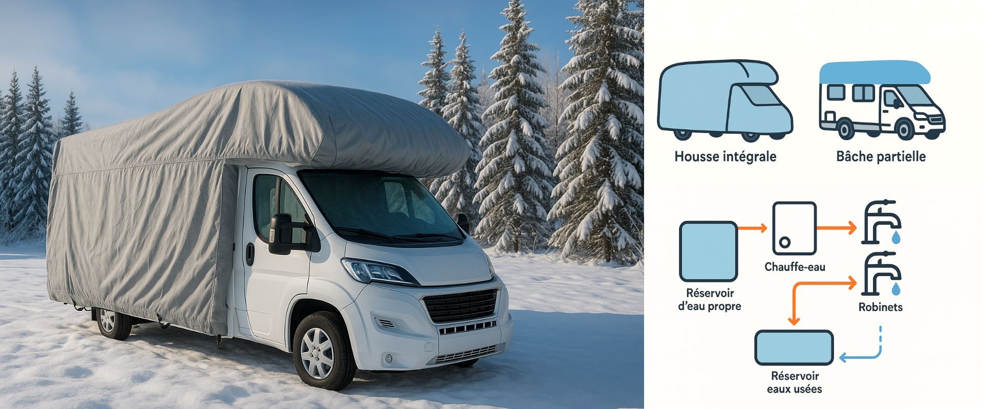 Si ton camping-car passe l’hiver dehors, pense à t’équiper d’une housse camping-car respirante, et complète si besoin avec une bâche camping-car adaptée. C’est un investissement simple pour gagner des mois de tranquillité !