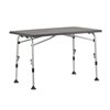 Tables légères avec armature aluminium. Pieds ajustables indépendamment (x4). Plateau en Sevelit de très haute qualité, résistant à la chaleur (180°), aux intempéries, aux rayures et au soleil. Charge max : 30 kg.
